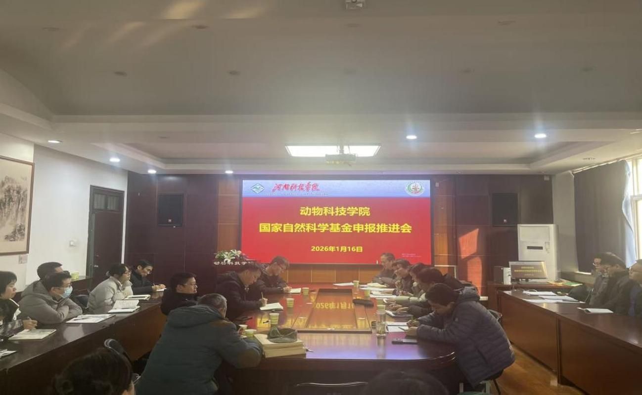 1月16日,动物科技学院在E302会议室召开国家自然科学基金项目申报推进会。学院党政领导班子成员及全体教师参会,会议由学院党委书记胡付广主持。