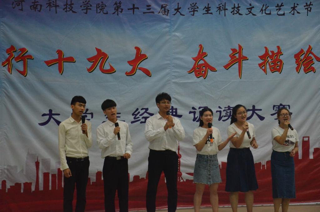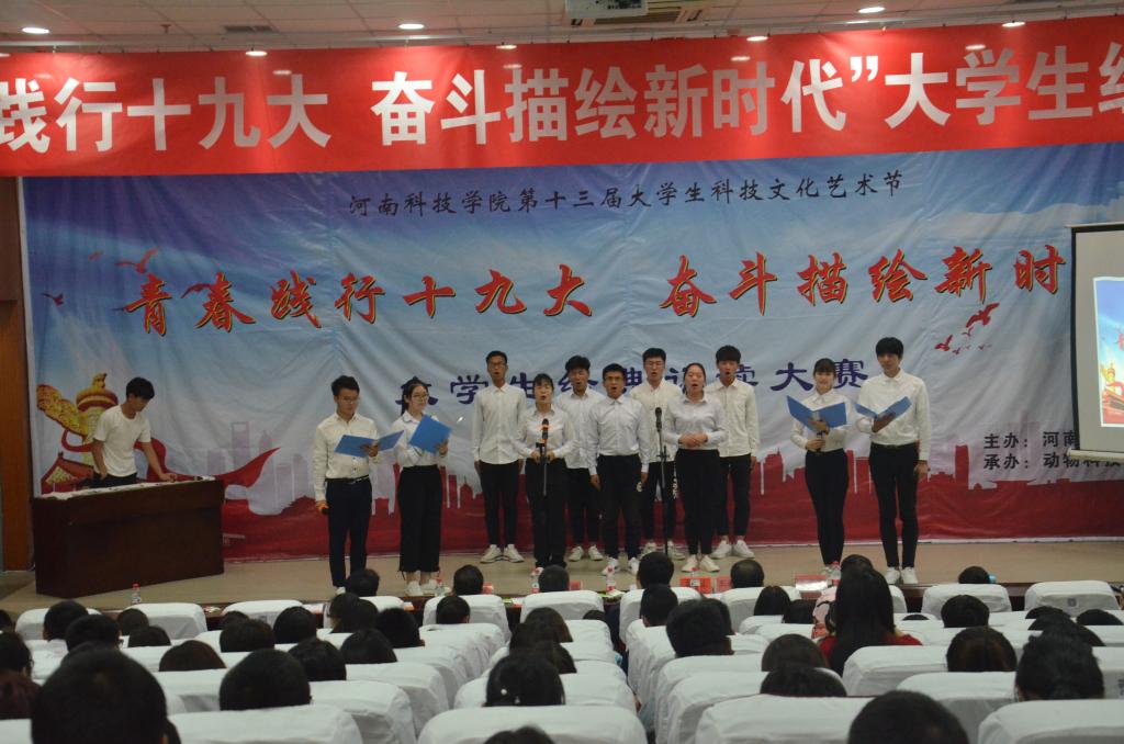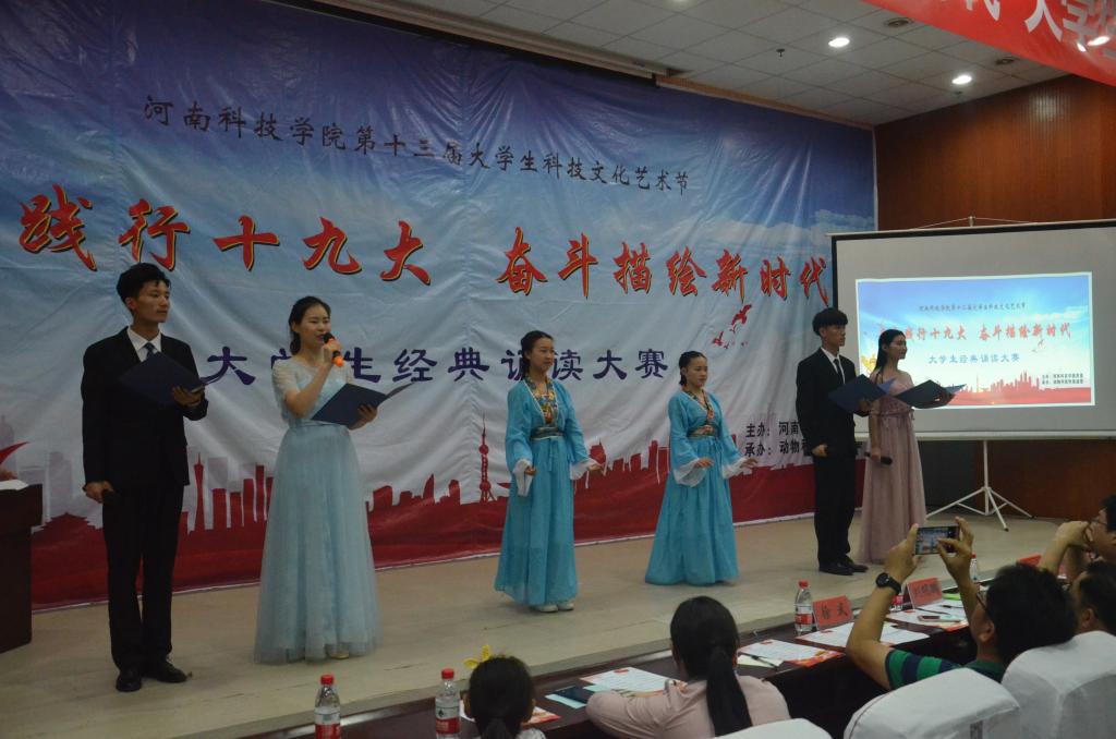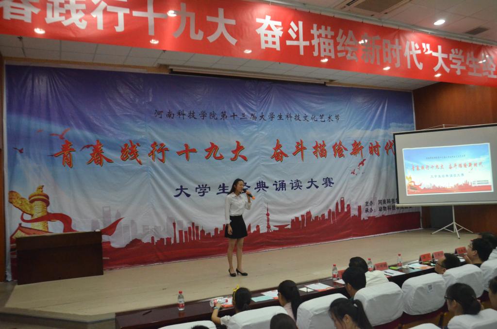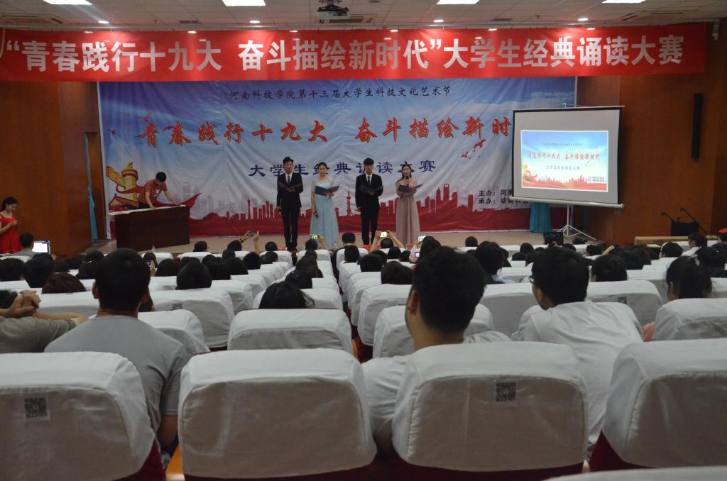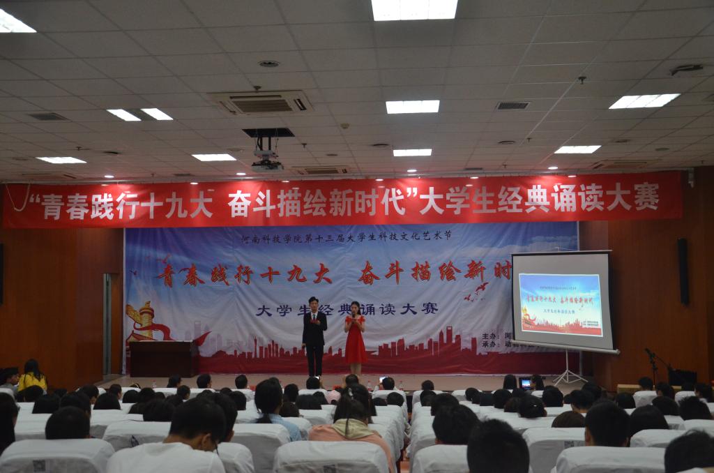 为深入贯彻落实习近平新时代中国特色社会主义思想和党的十九大精神,丰富校园文化生活,5月13日晚,“青春践行十九大,奋斗描绘新时代”大学生经典诵读大赛在图书馆报告厅举行,200余名师生代表共同观看了比赛。