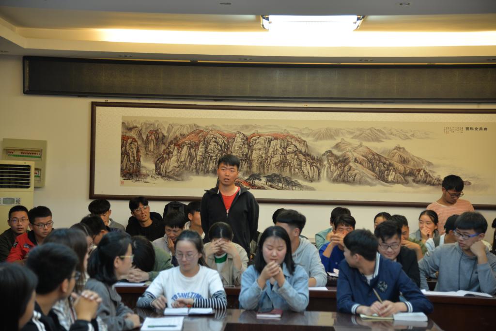 学生会主席任战士首先带领大家学习了《学生会、研究生会干部自律公约》,要求全体团委学生会成员恪守学生本分、牢记本会宗旨、永葆理想主义情怀、扎扎实实做事、营造平等氛围、摒弃庸俗习气,并对开学以来学生会的各项工作进行总结,随后,各部室部长就本部室在日常工作中遇到的问题作了分析和思考,各班代表也从普通同学的角度,对如何更好地开展学生会工作提出了建议。