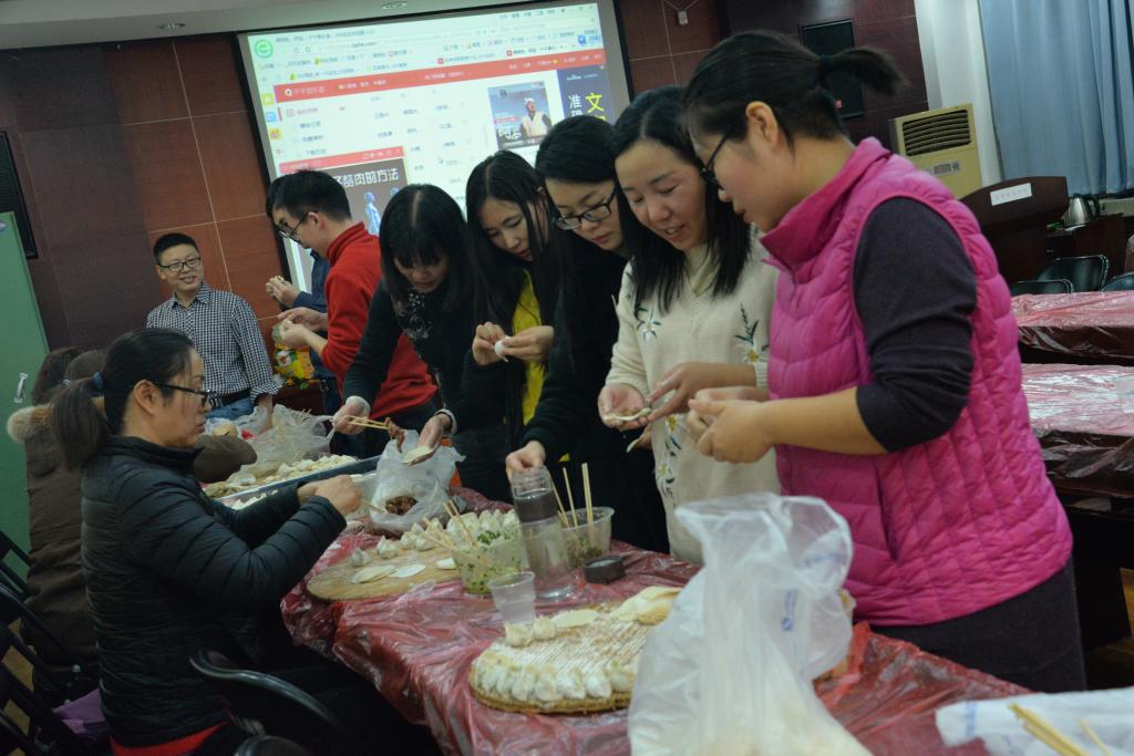 联欢现场,老师们自愿结合、分工协作,各显其能,包出形状各异、馅大皮薄的饺子,整个活动中,大家共同包饺子、话家常,始终洋溢着浓浓的节日氛围,随着一盘盘热乎乎的饺子出锅,联欢活动也到达了高潮,大家在紧张的工作之余享受了轻松和快乐,感受了传统文化的独特魅力,通过包饺子活动,所有人在一起动手合作,释放了平时工作压力,更重要的是加强了各教研室间的交流,增进了友谊。