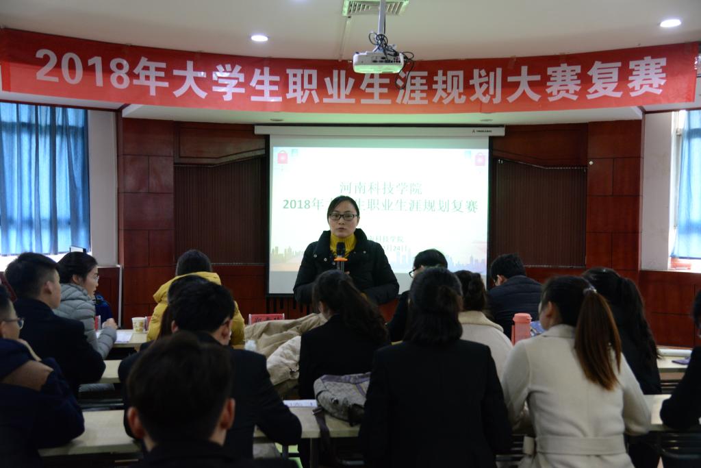 为普及大学生职业生涯规划知识,正确引导大学生树立职业生涯规划理念,提高就业技能与实践能力,以科学的态度和方法规划自己的职业生涯,12月24日下午我院在招生就业处报告厅举办了河南科技学院“2018年大学生职业生涯规划大赛”复赛。