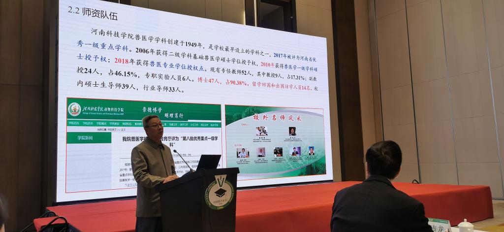 马金友院长围绕目标与标准、基本条件、人才培养、服务贡献四个方面21个核验要素汇报了我院兽医硕士专业学位授权点的核验工作情况。