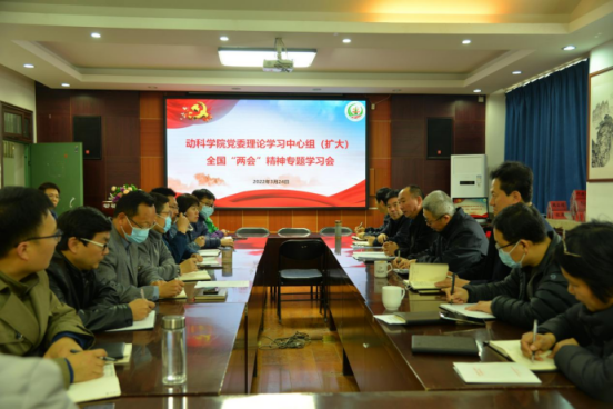 3月24日上午,动物科技学院在E302会议室召开党委理论学习中心组(扩大)全国“两会”精神专题学习会,学院党政班子、党支部书记、办公室及团委全体人员参加会议。会议由学院党委书记郭东升主持。